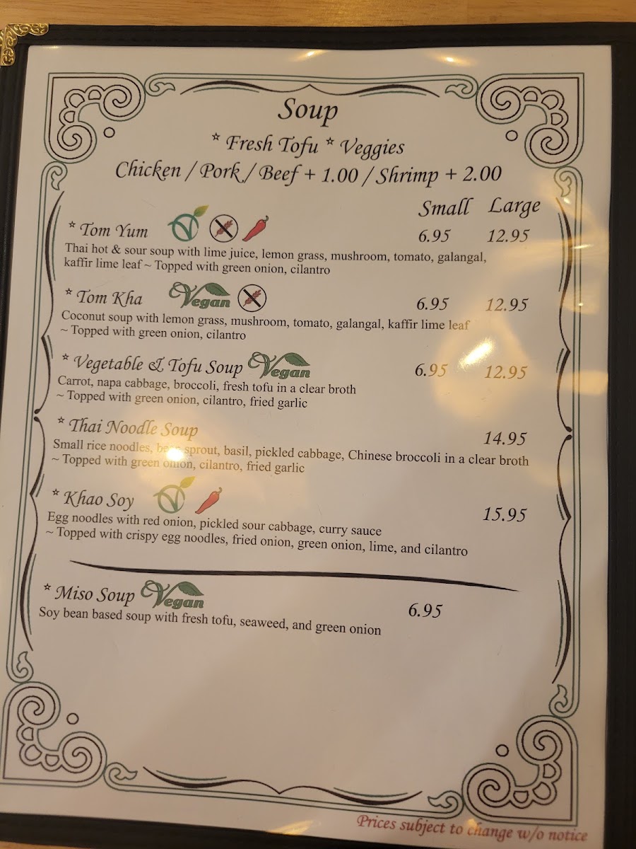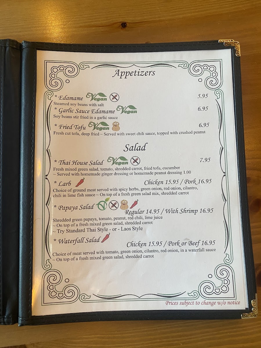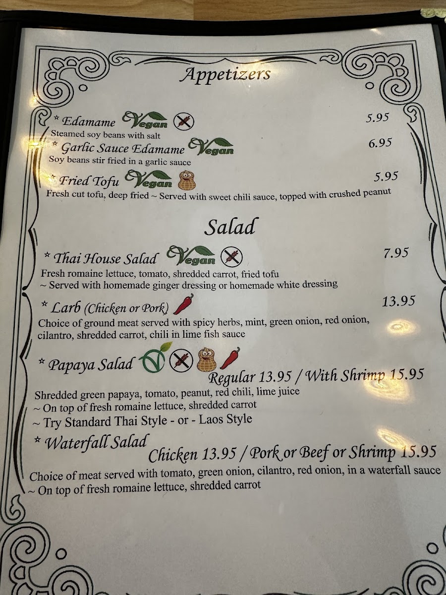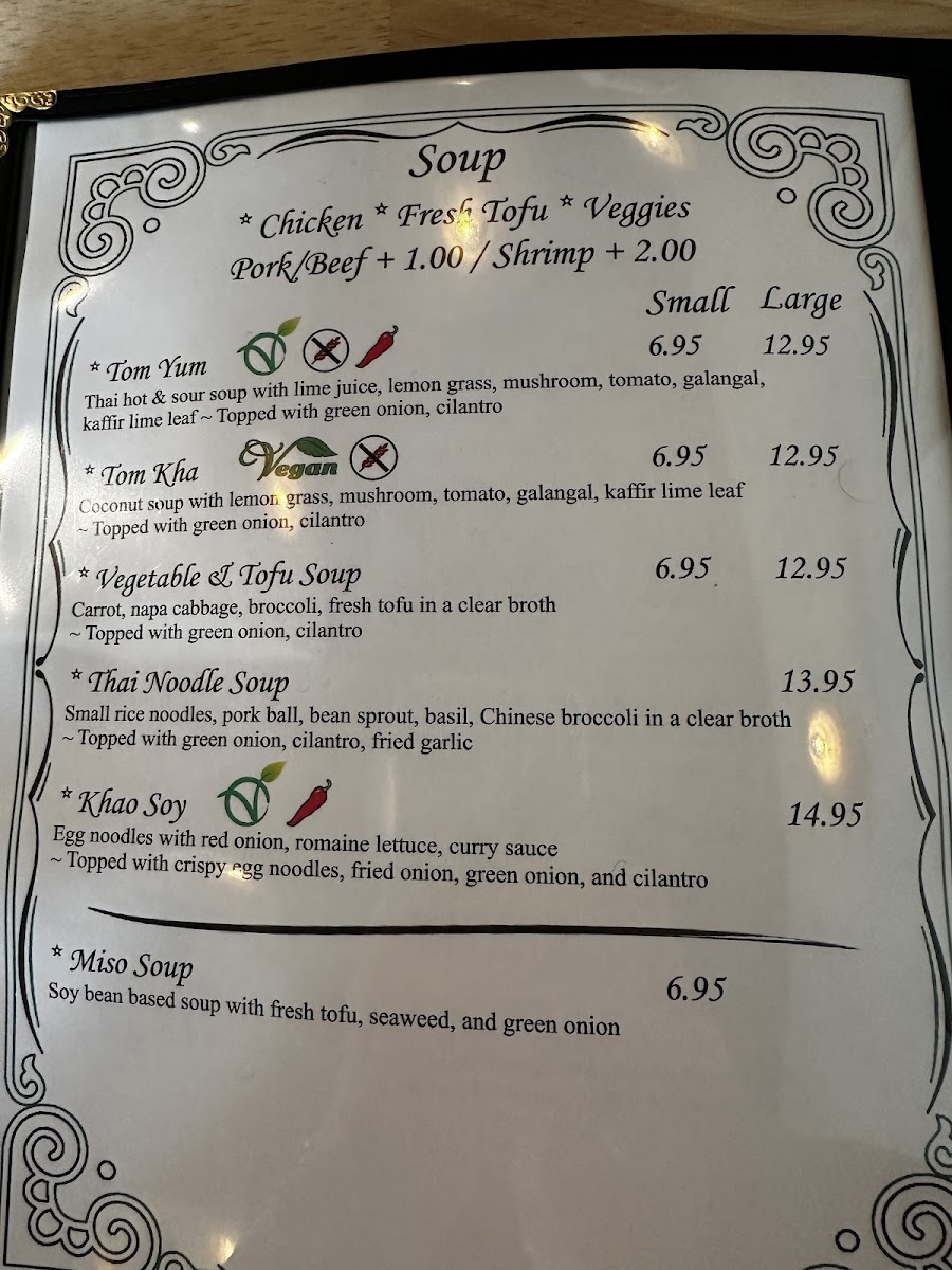 At Koon Thai Restaurant, the menu offers a delightful mix of traditional Thai flavors and global wine selections, providing an extensive range of appetizers, salads, soups, rice bowls, and beverages. The appetizer section features Edamame and Garlic Sauce Edamame, offering a simple yet flavorful start to any meal. The salads stand out with the Thai House Salad, Papaya Salad Salad, and the refreshing Waterfall Salad, each providing a unique blend of Thai herbs and fresh ingredients.